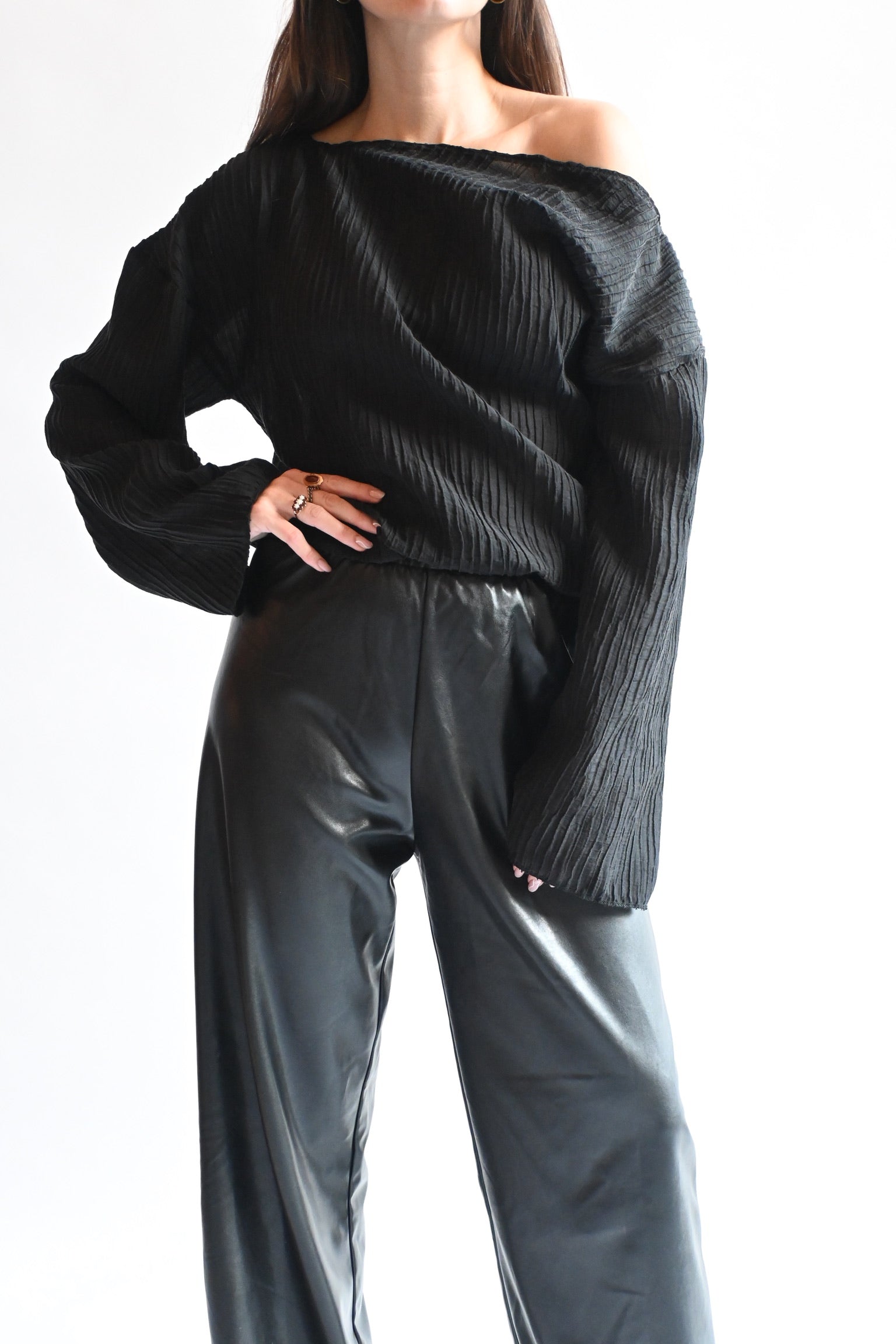 Off-shoulder top met wijd uitlopende mouwen. Door de structuur in de stof behoudt hij een stevige, licht stijve vorm.